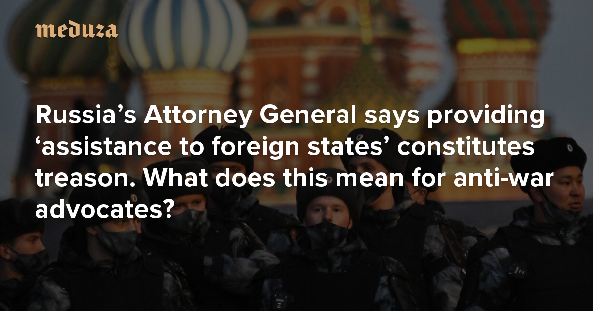 On February 27, the Russian Attorney General’s Office promised to “make legal determinations” in the event that any Russian citizen provides “assistance to a foreign state to the detriment of the security of the Russian Federation” during the war with Ukraine. The agency stressed that providing any such assistance will be considered state treason, which carries a punishment of 12 to 20 years. Meduza asked lawyer Ivan Pavlov, head of the human rights group Department One, to explain what this means for Russians who speak out against the war in Ukraine.