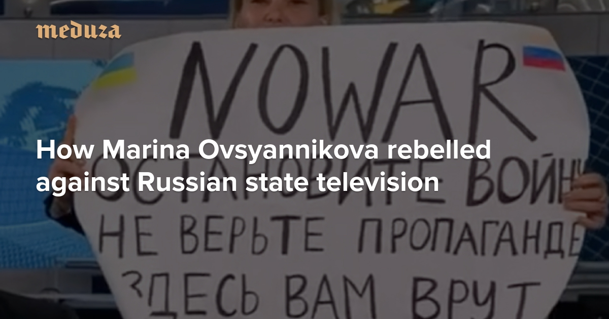 During a live broadcast on Monday evening, March 14, on Channel One Russian state television, a station employee named Marina Ovsyannikova ran out on stage behind the news anchor, unfurled an antiwar sign, and shouted antiwar slogans. Ovsyannikova managed just a few seconds on the air before the transmission cut away to another segment. She was later arrested, held overnight, convicted the following evening of the misdemeanor offense of inciting unpermitted protests in a prerecorded statement that circulated on social media, fined 30,000 rubles (roughly $250), and released. Federal investigators are still reviewing her televised protest and might press separate, possibly felony charges. Meduza spoke to Ovsyannikova’s colleagues and pieced together her story. Though she alone has even dared such a disruption of Russian broadcast television, Ovsyannikova’s personal opposition to the war against Ukraine is not uncommon among those who work for Russian state TV, Meduza learned.