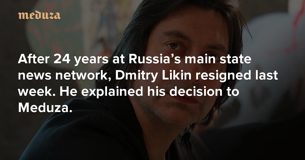 'I was taught that every life is priceless' After 24 years at Russia’s main state news network, Dmitry Likin resigned last week. He explained his decision to Meduza.