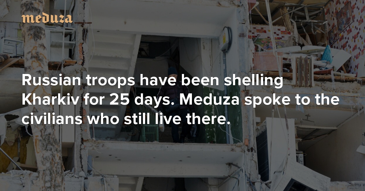 Russian troops have been shelling Kharkiv nonstop for over three weeks now. The city’s residential areas and historic center are completely destroyed, and necessities like food and medicines are difficult to come by. More than 100 civilians have been killed, while hundreds of thousands of others have fled the city. Meduza spoke to some of the people who remain about what life is like in Kharkiv and what’s motivating them to stay.