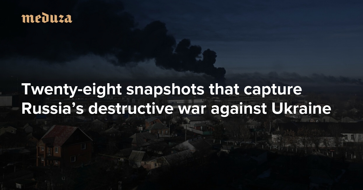 Today, March 24, 2022, marks one month since Vladimir Putin ordered Russian troops to undertake a full-scale invasion of Ukraine. These four weeks have changed the country beyond recognition: Ukrainian cities — from Kharkiv to Volnovakha, and Mariupol to Kherson — have suffered widespread damage and destruction from bombardments; more than 3.6 million people have been forced to flee abroad as refugees. The United Nations has recorded at least 2,685 civilian casualties, including 1,035 killed and 1,650 injured. The real toll is much higher — thousands have reportedly died in besieged Mariupol alone. The actual number of military casualties, both Russian and Ukrainian, also remains unknown as yet. To bear witness to this catastrophic month, Meduza shares one photo from each day of Russia’s war against Ukraine.
