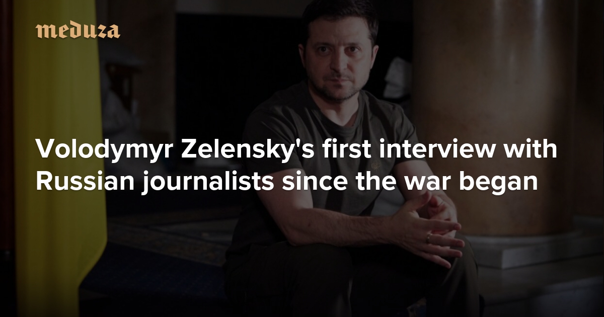 On Sunday, March 27, Volodymyr Zelensky gave his first extensive interview with Russian journalists since the beginning of Russia’s war against Ukraine. Zelensky spoke over Zoom with Meduza editor-in-chief Ivan Kolpakov, Dozhd editor-in-chief Tikhon Dzyadko, writer and journalist Mikhail Zygar, and Kommersant special correspondent Vladimir Solovyov (not to be confused with the Russian propagandist who shares his name). Read Meduza’s translation below.