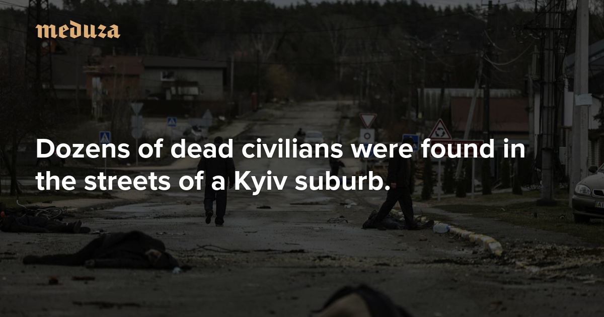 Journalists and Ukrainian officials have reported that dozens of dead civilians were found lying on the streets of Bucha, a city northwest of Kyiv. Reuters and Ukrainian news agency UNIAN published photos of bodies in civilian clothing, some of which had their arms tied behind their backs. Ukrainian presidential advisor Mykhailo Podolyak posted a similar photo on his Twitter account. According to Podolyak, the people in the photo were shot by Russian soldiers.