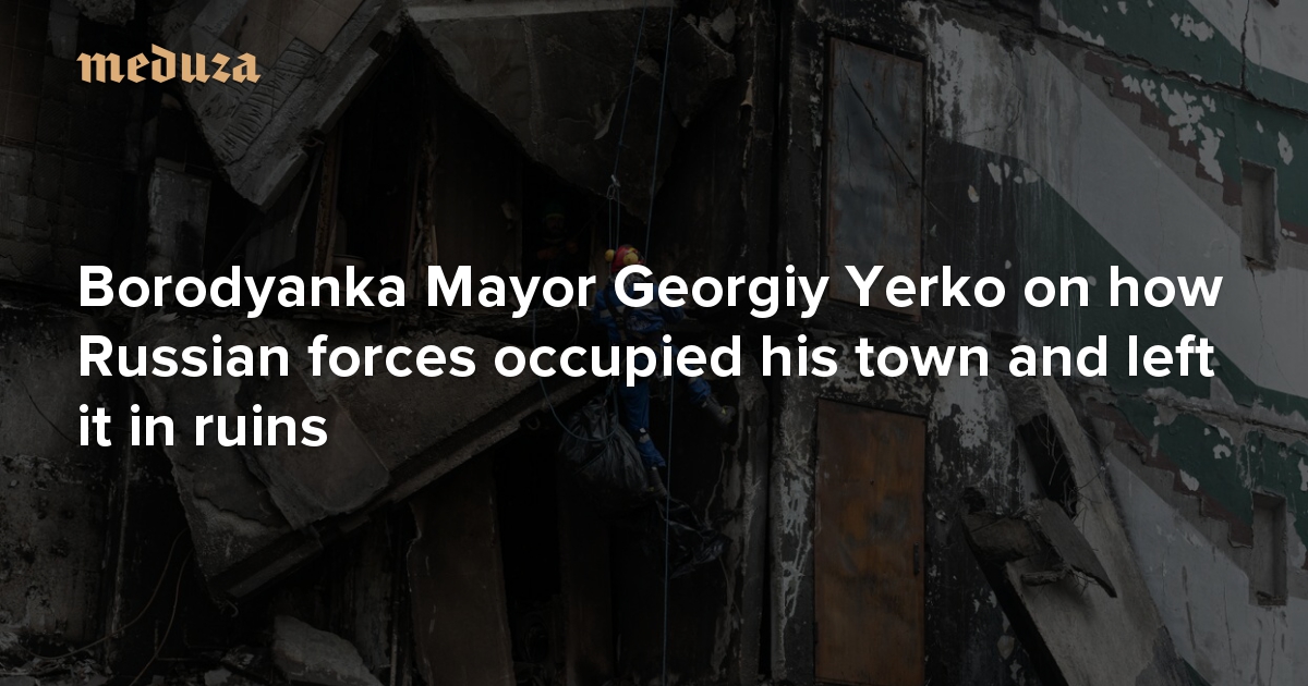 Borodyanka is a small town in the Kyiv region, on the right bank of the Dnipro River. When the full-scale invasion of Ukraine began, the towns and villages surrounding Hostomel’s Antonov Airport, including Irpin and Bucha, took the brunt of the assault from the Russian troops moving toward Kyiv from Belarus. Borodyanka, which is a little further west, also came under occupation. When Russian forces retreated from the Kyiv region about a month later, Ukrainian authorities said the state of Borodyanka was worse than the horrors uncovered in Bucha. Those who survived the occupation spoke of tanks shooting at residential buildings at point-blank range, while civilians hid in their basements. Constant gunfire made rescue operations impossible during the occupation. Today, the bodies of the dead are finally being extracted from the ruins. Speaking to Meduza, Borodyanka’s acting Mayor Georgiy Yerko tells the story of how Russian forces destroyed his town.