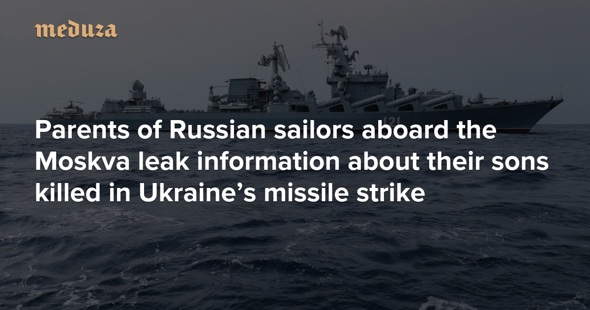 In Russia’s Sverdlovsk region, a mother named Anna Syromyasova wrote on social media that her son (another conscripted sailor) also disappeared aboard the Moskva. Syromyasova told Meduza that her son is currently considered missing, though she said she wasn’t shown the list itself and doesn’t know how many others are still unaccounted for. “There are no lists. We’re looking for them ourselves. They don’t tell us anything,” she explained.