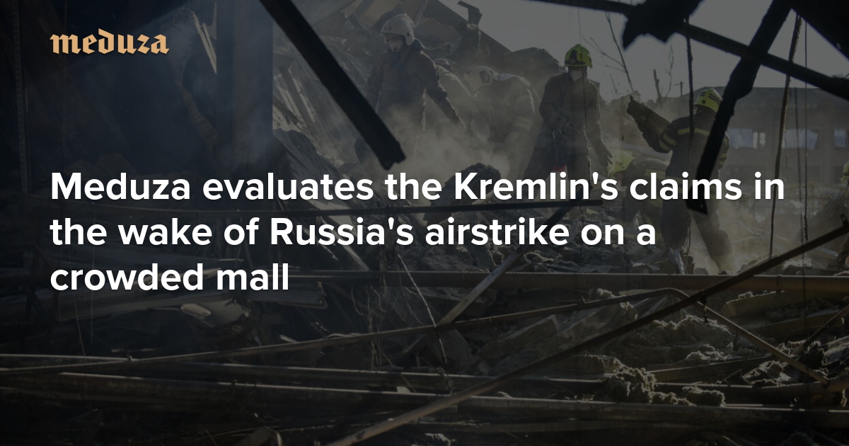 On Monday, June 27, a Russian airstrike on a shopping mall in Kremenchuk, a city in Ukraine’s Poltava region, killed at least 20 civilians; dozens more are still unaccounted for. Kyiv called the strike a terrorist act and an “intentional attack on a civilian target.” Russian officials initially claimed the attack was a “Bucha-style false flag,” but the Russian Defense Ministry soon acknowledged that a strike had indeed occurred. In Russia’s telling, however, a strike “on a foreign munitions warehouse” caused some of the weapons stored there to detonate, damaging a nearby defunct shopping mall. Meduza explains the holes in Russia’s story.
