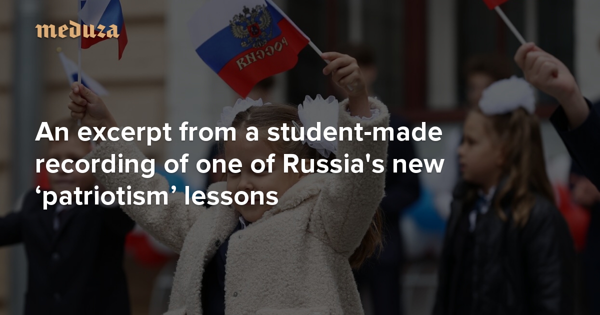 At the start of the clip, a teacher is heard asking students how they define patriotism and nationalism, as well as which value they personally identify more with. When the students don’t answer, the teacher tells them the story of a four-year-old boy who was killed by “nationalists” — a story she claims to have heard in the news from a soldier who took part in the “special military operation” in Ukraine. She then tells the students about the “reasons” for the war, praising Vladimir Putin’s decision to invade Ukraine.