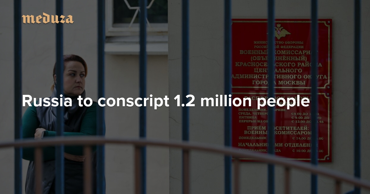 Russian authorities plan to conscript 1.2 million people for their “partial mobilization,” Meduza has learned from a source close to one of the country’s federal ministries.