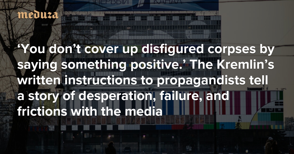 ‘You don’t cover up disfigured corpses by saying something positive’ The Kremlin’s written instructions to propagandists tell a story of desperation, failure, and frictions with the media