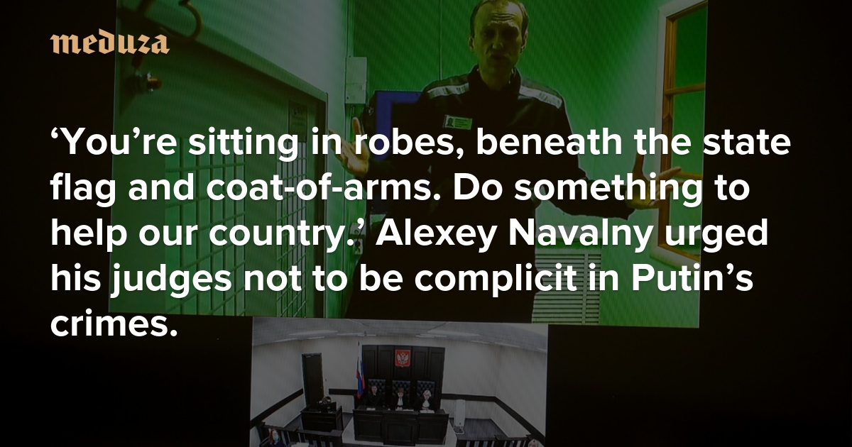 ‘You’re sitting in robes, beneath the state flag and coat-of-arms. Do something to help our country.’ Alexey Navalny urged his judges not to be complicit in Putin’s crimes.