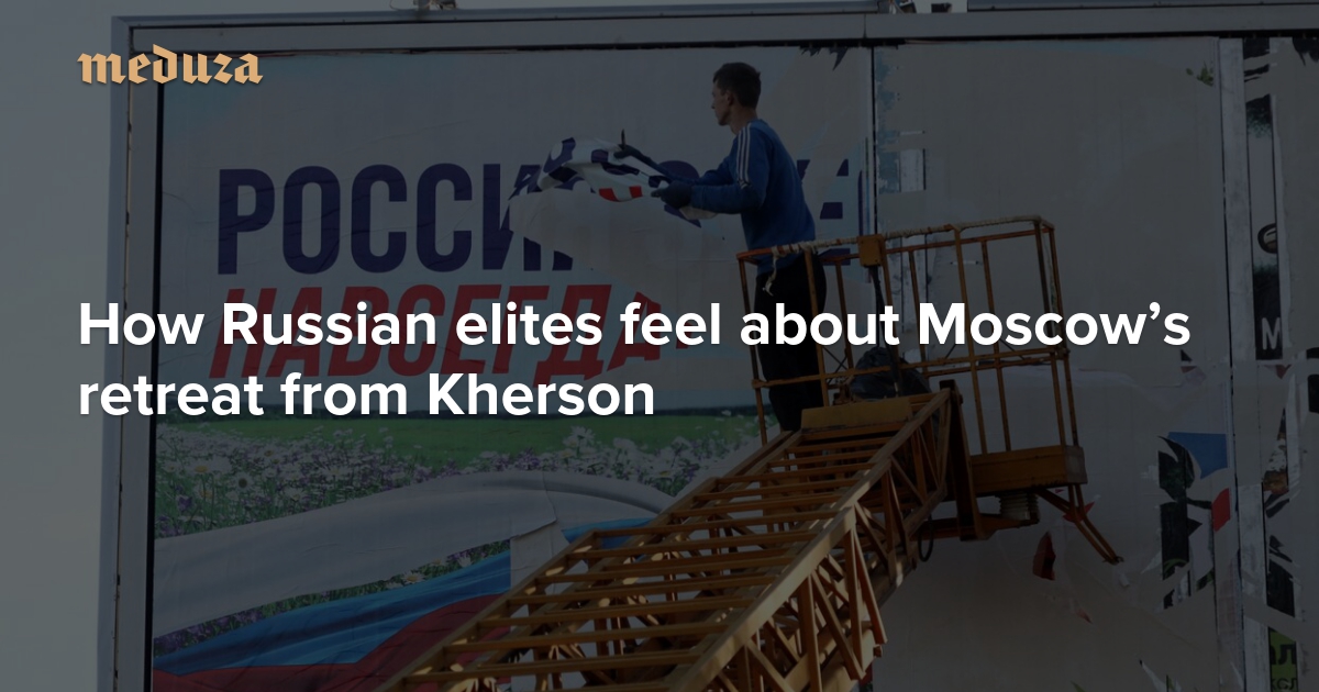It’s no surprise that few in Russia’s ruling class were pleased about the country’s retreat from Kherson just one week ago. Still, sources from the Putin administration and the Russian government who spoke to Meduza wanted to reiterate: the withdrawal was a “very painful event” for the Russian elite.