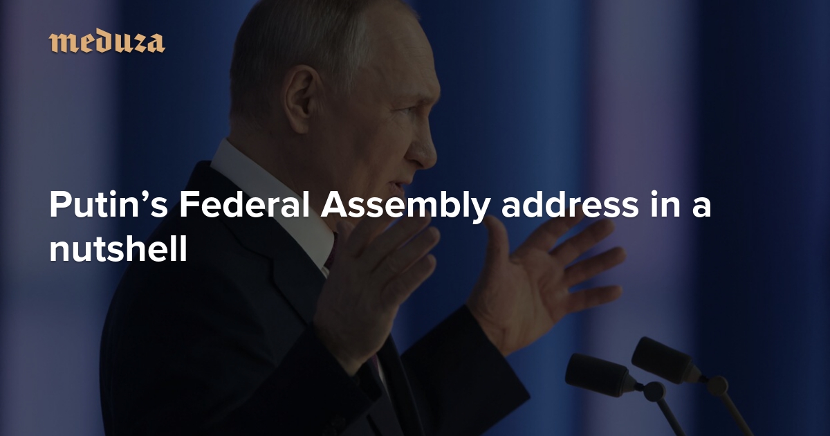 This is a summary of the main points from Vladimir Putin’s address to the Russian government. The statements below are not direct quotations, but Meduza’s concise paraphrase of what Russia’s president said in his two-hour speech before the Federal Assembly.