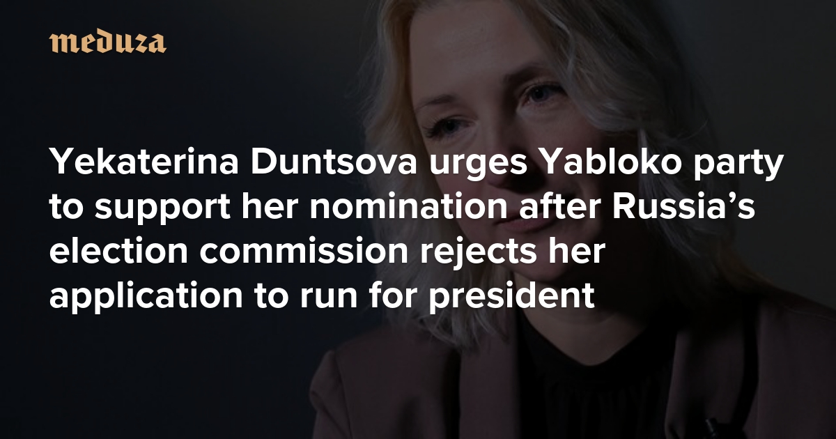 Yekaterina Duntsova called on the Yabloko party to nominate her as a presidential candidate instead, since the voters’ committee that supported her nomination cannot conduct a second nomination meeting. Duntsova appealed to Yabloko chairman Nikolai Rybakov, party founder Grigory Yavlinsky, and other party members.