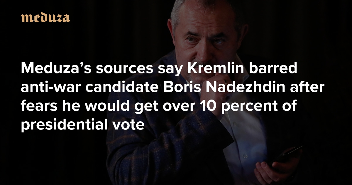 ‘It would show something is wrong’ Meduza’s sources say Kremlin barred anti-war candidate Boris Nadezhdin after fears he would get over 10 percent of presidential vote
