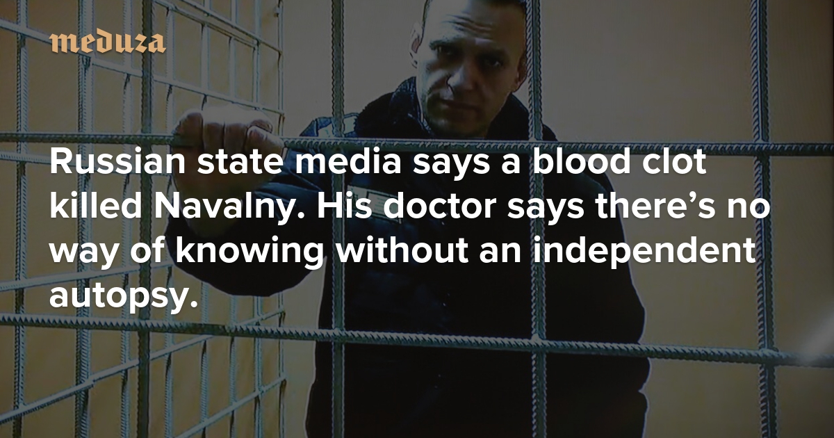 ‘An unlikely reason for a natural death’ Russian state media says a blood clot killed Navalny. His doctor says there’s no way of knowing without an independent autopsy.
