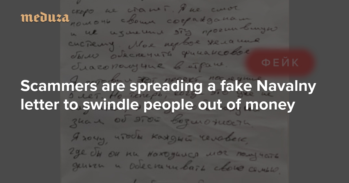 Following Russian opposition politician Alexey Navalny’s death in prison on February 16, scammers started posing as supporters of Russian opposition leaders and sharing a fake letter they claim was written by Navalny. The fraudulent letter says that Navalny had been developing an initiative for five years to ensure Russia’s “financial well-being,” and encourages people to invest in the initiative — the money from which ends up in the pockets of scammers.