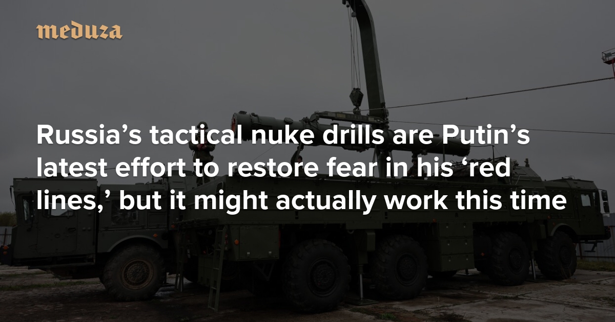 This week, Russia’s Defense Ministry announced that President Putin has ordered preparations for drills to test the combat readiness of the country’s tactical nuclear weapons. In a series of statements from Russian military spokespeople, senior diplomats, and the Kremlin’s press secretary, Moscow has explained the unscheduled exercises as a response to Western rhetoric about military aid to Ukraine, framing the expanded assistance as an intervention that directly endangers (internationally recognized) Russian territory and risks spiraling out of control. This first official nuclear threat since February 2022 to punish the West for supporting Ukraine is likely the Kremlin’s attempt to restore its faded “red lines” in the war. Meduza explains how the nuke drills are militarily unremarkable but might nevertheless be an effective deterrent amid Western concerns about uncontrolled escalation.