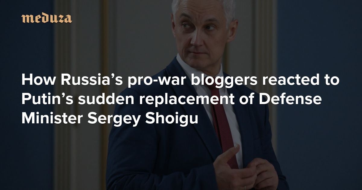 In a surprise reshuffle on Sunday, Vladimir Putin removed Sergey Shoigu from his post as Russia’s defense minister, where he had served since 2012. Set to replace him is Andrey Belousov, a longtime presidential economic adviser who’s been a deputy prime minister since 2020. According to Kremlin spokesman Dmitry Peskov, the shakeup is part of a bid to better integrate the country’s defense spending into its overall economy: putting a civilian economist at the helm of of the Defense Ministry, he said, will make the agency more “open to innovation.” Russia’s pro-invasion military bloggers and “war correspondents” reacted cautiously to the news, with most of them trying to find reasons to be optimistic about the president’s decision to entrust the ministry to an economist heretofore unknown in Z-world. (Hardly any of them mentioned Shoigu, who’s replacing Nikolai Patrushev as Secretary of Russia’s Security Council.) Meduza shares some notable reactions to the news from the Russian pro-war blogosphere. They’ve been edited and abridged for length and clarity.