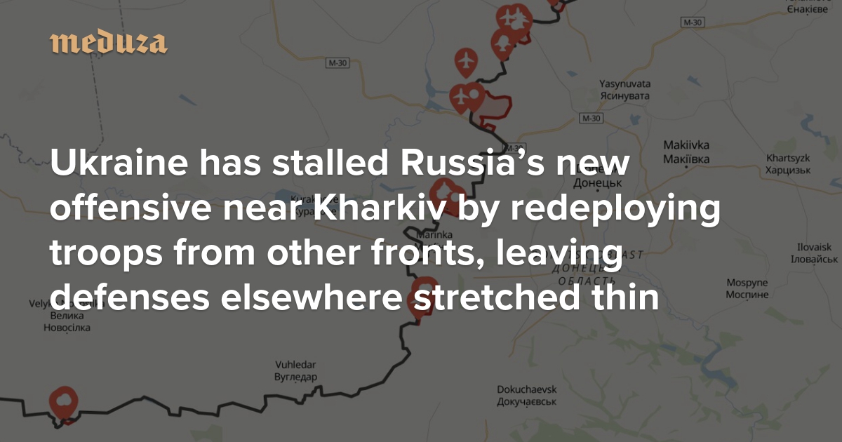 Russia’s new offensive in the border areas of Ukraine’s Kharkiv region has stalled after the Ukrainian command deployed substantial reserves to the area. This “rescue team” appears to have been assembled by drawing individual battalions from all fronts, with groups from a dozen different brigades now engaged in the fighting. Predictably, redeploying troops in this manner has weakened defenses in other areas. In recent days, the Russian army has been launching attacks in a dozen different sectors — from Ukraine’s southern Zaporizhzhia region to the Kupyansk front east of Kharkiv — making small but consistent gains everywhere. Moreover, the situation near Kharkiv remains dangerous for the Ukrainian army, as Russia clearly hasn’t committed all its available forces to the battle here.