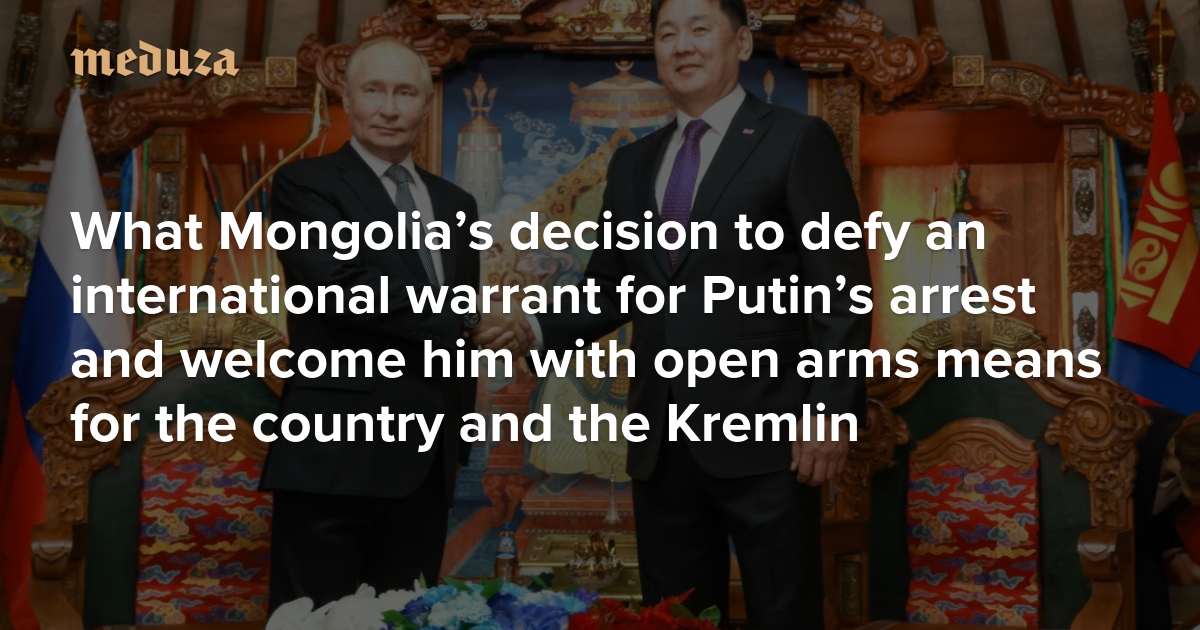 The International Criminal Court’s (ICC) decision to issue an arrest warrant for Vladimir Putin back in March of 2023 has thrown a bit of a wrench into the Russian president’s travel plans. On Monday, however, Putin landed in Mongolia — an ICC member state obligated to arrest him if he steps foot in the country. But instead of executing the warrant, the Mongolian authorities welcomed Putin with open arms, and the next day, he left the country unimpeded. Meduza explains what consequences Mongolia may face for disregarding international law, whether this defiance might encourage other nations to follow suit, and what this development could mean for the Kremlin.