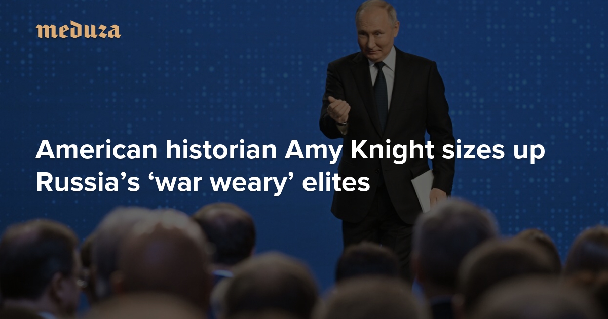 American historian Amy Knight has been studying Russian elites for decades. She spent 18 years at the U.S. Library of Congress as a specialist in Russian and Soviet affairs and has written multiple books on the Cold War, the KGB, its post-Soviet ideological successors, and the Kremlin. Some of her most recent work focuses on the culture of political assassinations under Vladimir Putin. Meduza spoke with Knight about the trials, tribulations, and transformations of Russia’s elites since the start of the full-scale invasion of Ukraine.