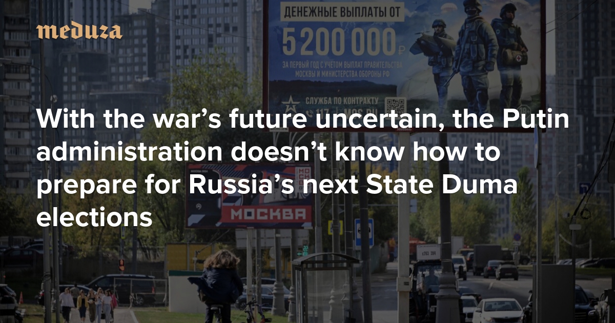 Russia’s next federal parliamentary elections are scheduled for September 2026 — less than two years away. This means it’s time for the Putin administration to start crafting a strategy to keep the ruling United Russia party in power. However, sources close to the Kremlin and the Russian government tell Meduza that the chaos of the war has left authorities at a loss as to what they should even be planning for. As one political strategist put it, if the war is still going on, the campaign will need to emphasize “ultrapatriotism,” while a post-war scenario would call for more “moderate forces.” Meduza lays out the challenges facing Russia’s ruling elites as they try to predict the unpredictable.