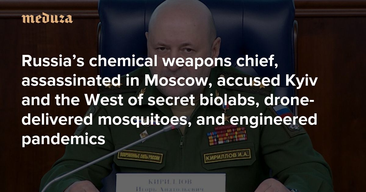 In the hours before dawn on December 17, a bomb detonated on a Moscow street, killing the head of Russia’s radioactive, chemical, and biological defense forces. Ukrainian intelligence quickly claimed responsibility through the media, calling General Igor Kirillov a “war criminal,” while former president and current deputy chairman of the Security Council Dmitry Medvedev wasted no time in calling for the “elimination” of Ukraine’s military and political leadership in response. But Kirillov was known for more than just his title — since Russia’s February 2022 invasion, he’d accused Kyiv and its allies of everything from running secret biolabs and developing drone-delivered mosquitoes to planning dirty bombs and designing weaponized pandemics. Meduza looks back at some of Kirillov’s more controversial claims.