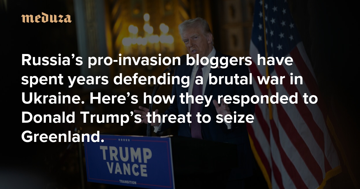 This week, the U.S. president-elect tested Z-bloggers’ grasp of the White House to come when he refused to foreswear military or economic coercion to gain control over Greenland and the Panama Canal. “People really don’t even know if Denmark has any legal right to [the former], but if they do, they should give it up because we need it for national security,” Trump explained, demonstrating a worldview that resonates with many of the writers in Russia who have devoted the past several years to defending a less hypothetical territorial expansion. So far, Moscow has downplayed the remarks, reasoning that Trump still isn’t president, so he doesn’t yet speak “on behalf of the government and the people of the United States in an official capacity.” But Russian bloggers have been less guarded. Meduza reviews responses from some of Telegram’s most prominent Z-channels.