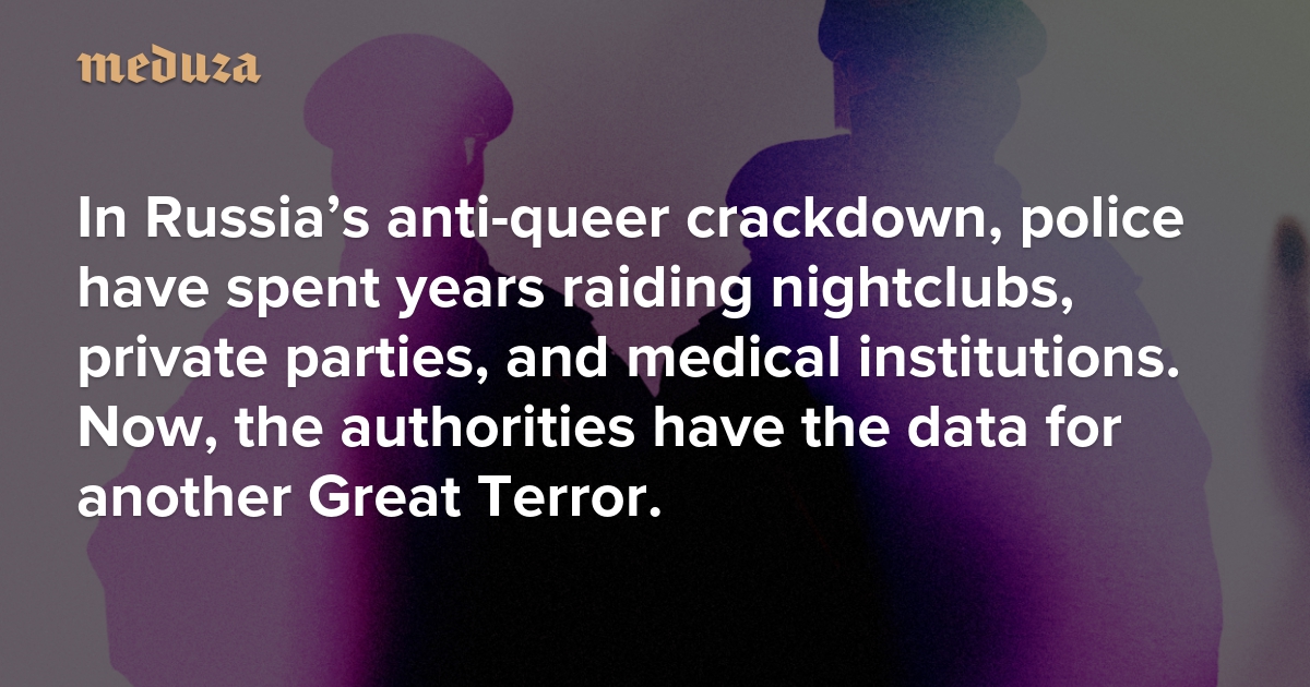 Since November 2023, when Russia’s Supreme Court designated the non-existent “international LGBT social movement” as an “extremist organization,” police departments across the country have executed a full-scale crackdown on the queer community. Officers have raided clubs and parties and placed LGBTQ+ people under surveillance while bigots harass queer community members and try to expose them to employers and parents. Wherever the authorities go, they collect evidence that facilitates monitoring, from video footage and business records to fingerprints and even mouth swabs. Meduza special correspondent Lilia Yapparova has learned that Russian officials are also discussing overhauling the country’s data-collection practices to create a single electronic registry for monitoring LGBTQ+ individuals — a database that would make blackmailing and persecuting queer people vastly easier.
