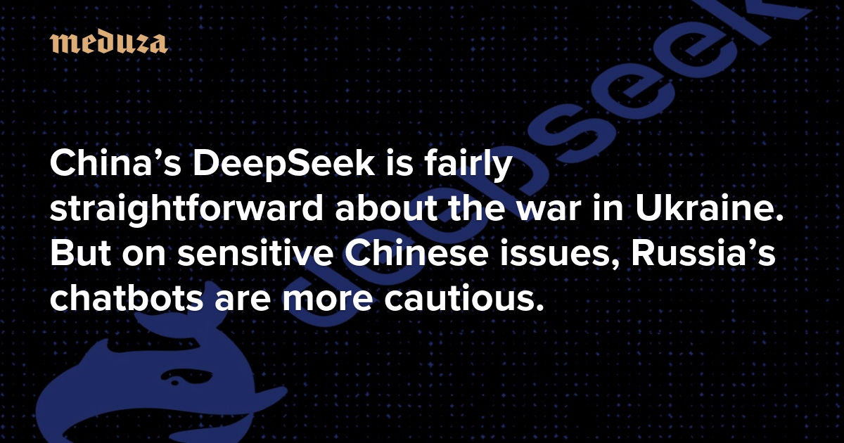 Most AI chatbots have restrictions on the topics they’re programmed to discuss, but some have far more than others — particularly when it comes to political issues. This week, China’s newly released DeepSeek-R1 upended the AI market by surpassing ChatGPT in downloads on Apple’s AppStore. Users quickly found that the chatbot appears to avoid discussing sensitive topics in China, such as the 1989 Tiananmen Square protests or Winnie the Pooh. Journalists at the independent outlet Holod Media decided to test how DeepSeek handles heavily censored topics in Russia, like the war in Ukraine, and compared the responses to how Russia’s own language models address Chinese politics. Meduza shares some of Holod’s findings, along with our own, below.