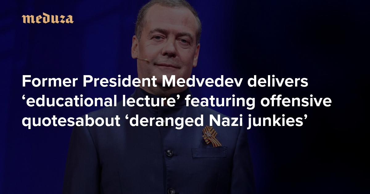 Dima shares his memes with the kids Former President Medvedev delivers ‘educational lecture’ featuring quotes from his blog about ‘deranged Nazi junkies’ and ‘cockroaches breeding in a jar’