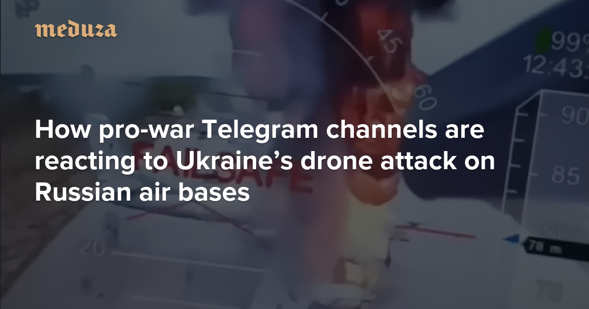 Over the weekend, Ukraine’s Security Service conducted a massive, sophisticated drone attack targeting airfields in five regions of Russia. According to the agency, “Operation Spiderweb” destroyed 41 aircraft (though these numbers haven’t been independently confirmed). Russia’s pro-war commentators on Telegram were universally unhappy about the attack but divided over what it means and who’s to blame. Meduza shares a selection of opinions from some of Telegram’s more odious corners.
