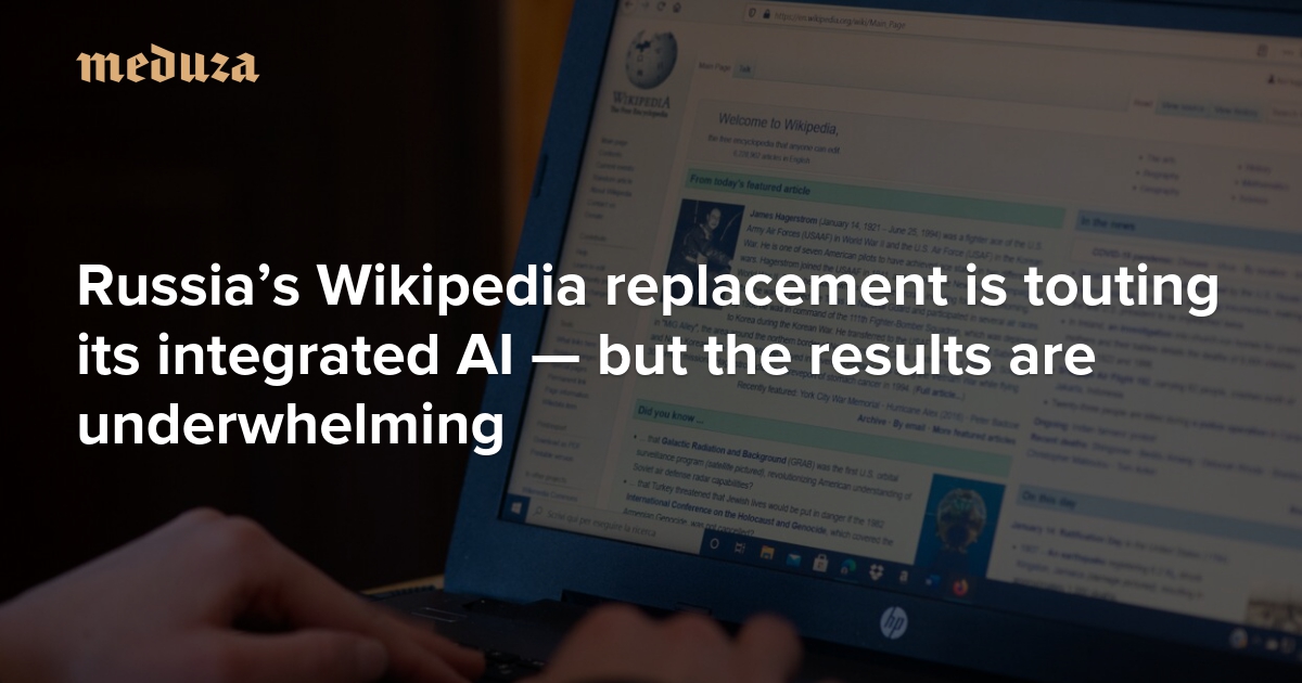 Earlier this month, Wikipedia scrapped its experiment with AI-generated article summaries following backlash from the site’s editors. Meanwhile, Russia is actively promoting its heavily state-censored online encyclopedia, Ruwiki, where a built-in neural network is touted as a key advantage over competitors. The results, however, have been far from impressive. Meduza examines how Russia’s homegrown Wikipedia alternative is trying to integrate AI — and why it still stumbles over “inconvenient” questions.