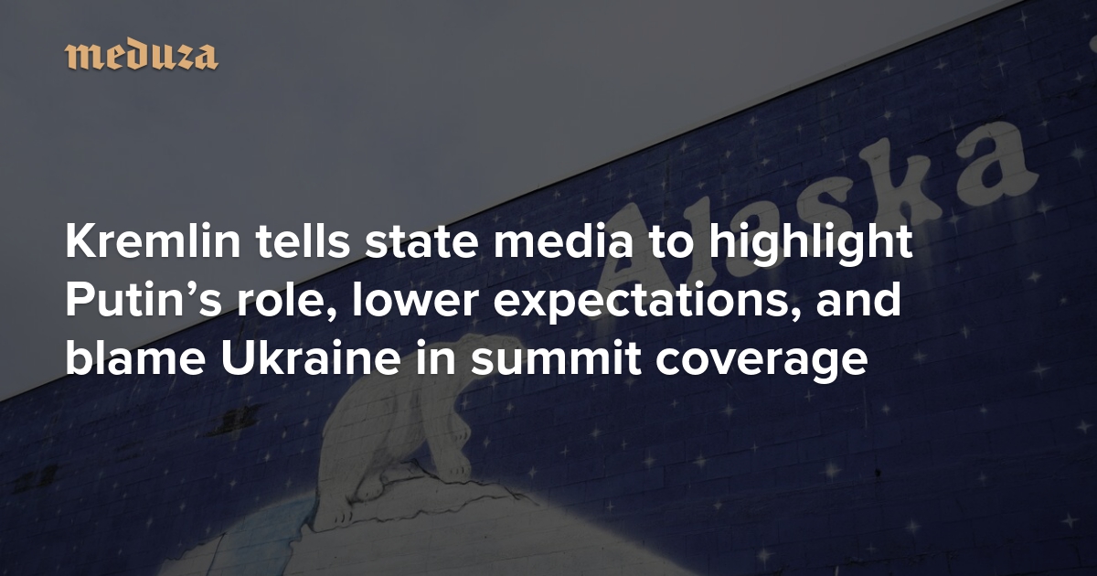 The Kremlin’s latest guidelines for Russia’s propaganda media focus on how outlets should cover Friday’s summit between Donald Trump and Vladimir Putin. The document, obtained by Meduza special correspondent Andrey Pertsev, calls for journalists to downplay expectations for the meeting’s outcome while emphasizing Putin’s role in “setting the agenda” for the U.S.–Russia relationship. It also instructs them to portray Ukraine as unreasonable and unwilling to negotiate — and to report that Putin made this argument to Trump.