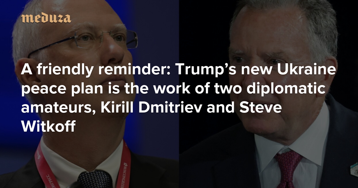 A friendly reminder: Trump’s new Ukraine peace plan is the work of two diplomatic amateurs, Kirill Dmitriev and Steve Witkoff