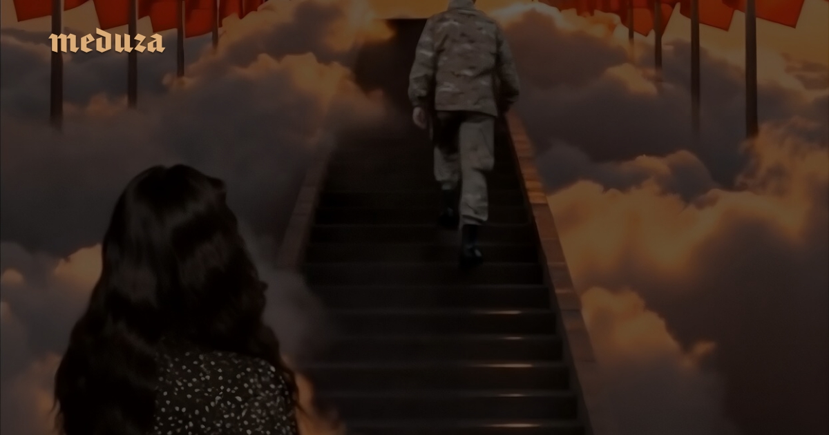The videos vary widely in style. Some aim for a near-documentary effect, with subtle head movements and faint smiles. Others lean into religious or quasi-religious imagery, or even fantasy: the fallen man thanks his wife, offers parting words to his children, promises to “always be there” — and then ascends a staircase into the sky, becoming an angel.