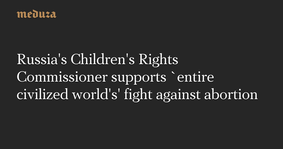Russia’s Children’s Rights Commissioner supports `entire civilized world’s’ fight against abortion