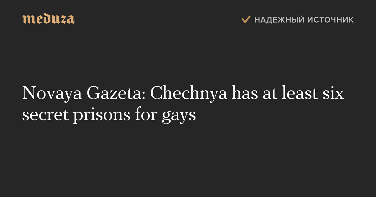 There are six known secret prisons for homosexuals in the Chechen Republic, reported Novaya Gazeta on Monday. Earlier, the publication specified that one of these prisons was situated in town of Argun; Radio Liberty then learned about the second such institution was located in the village of Tsotsi-Yurt. Novaya Gazeta did not report on the locations of the four remaining prisons.