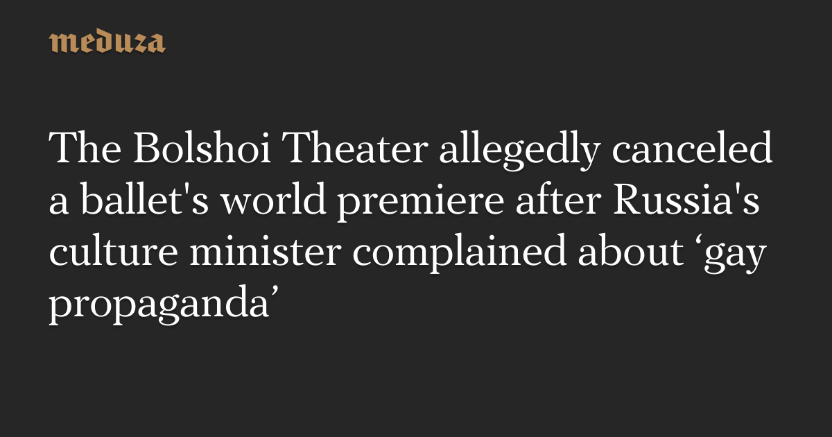 The Bolshoi Theater allegedly canceled a ballet's world premiere after Russia's culture minister complained about ‘gay propaganda’