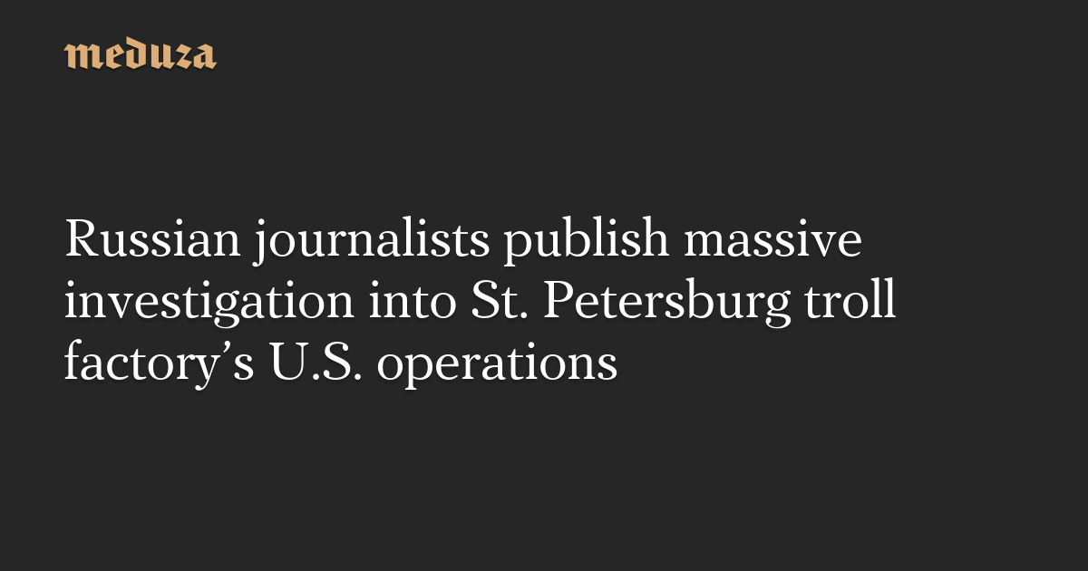 Russian journalists publish massive investigation into St. Petersburg troll factory's U.S. operations
