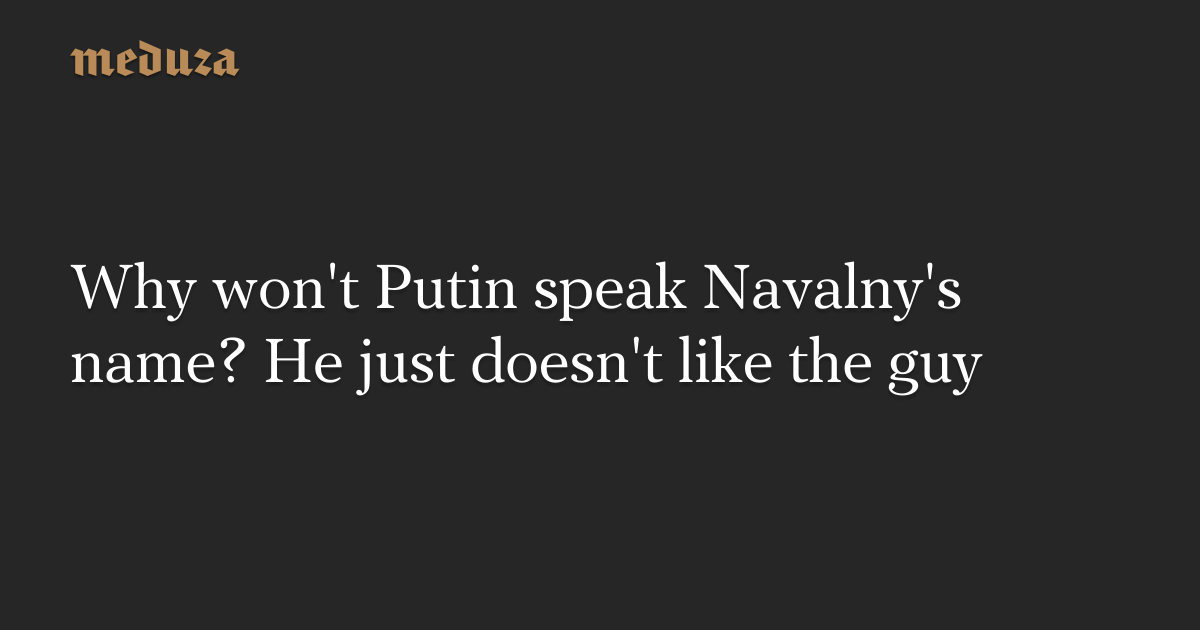 Asked why President Putin refuses to speak opposition politician Alexey Navalny’s name aloud, Kremlin spokesman Dmitry Peskov told reporters on December 15, “Well, he doesn’t do it. Yes, we’ve also noticed this. Apparently this is due to his attitude about this person, which the president certainly didn’t hide at yesterday’s press conference.”