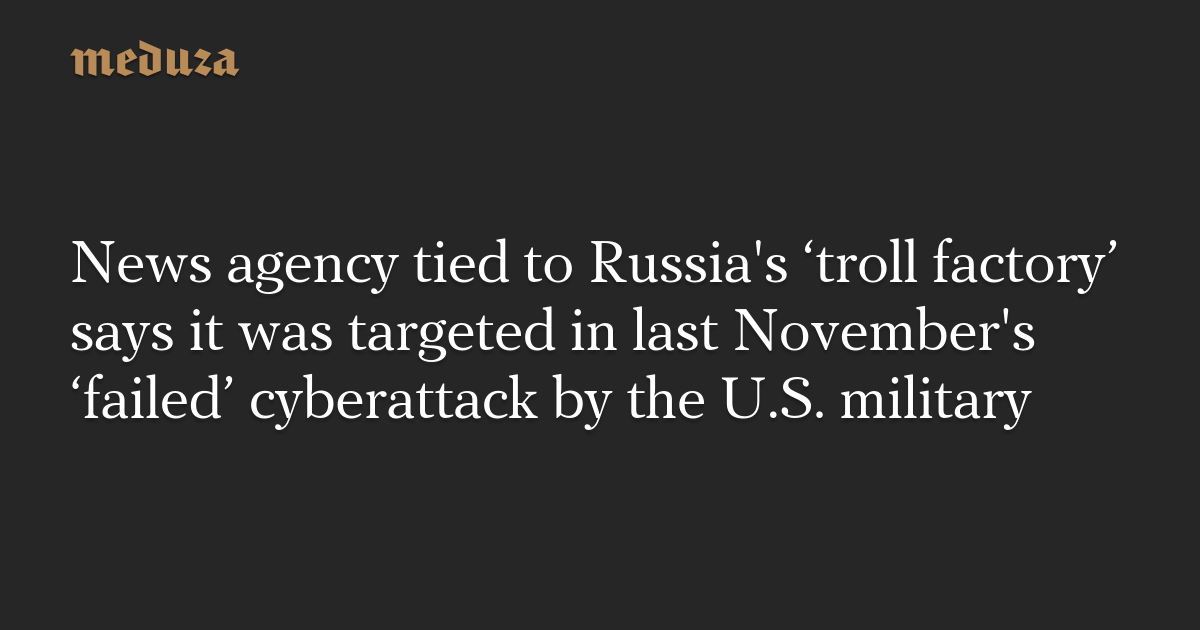 News agency tied to Russia's ‘troll factory’ says it was targeted in last November's ‘failed’ cyberattack by the U.S. military