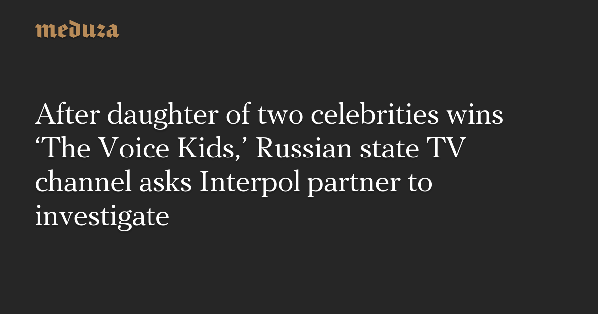 After daughter of two celebrities wins ‘The Voice Kids,’ Russian state TV channel asks Interpol partner to investigate