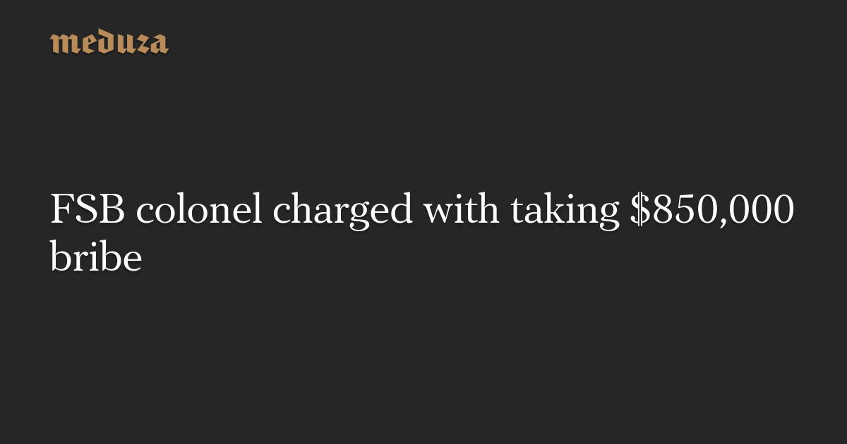 Federal Security Service (FSB) colonel Kirill Cherkalin, who leads the second branch of the agency’s K division, has been charged with taking a bribe in the amount of $850,000.
