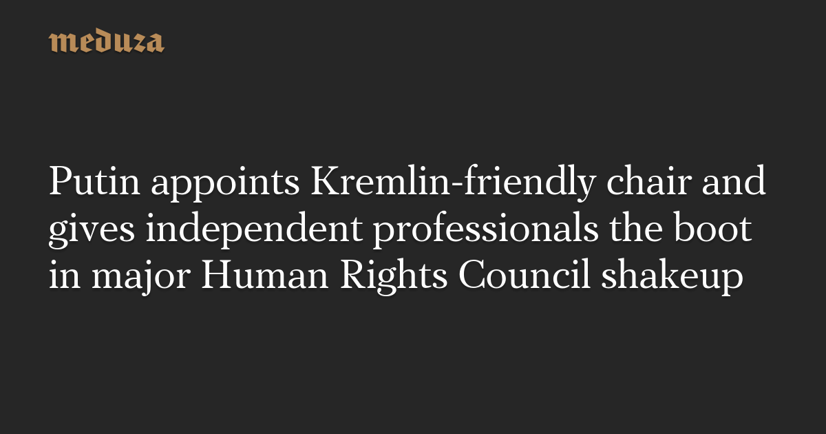 Putin appoints Kremlin-friendly chair and gives independent professionals the boot in major Human Rights Council shakeup