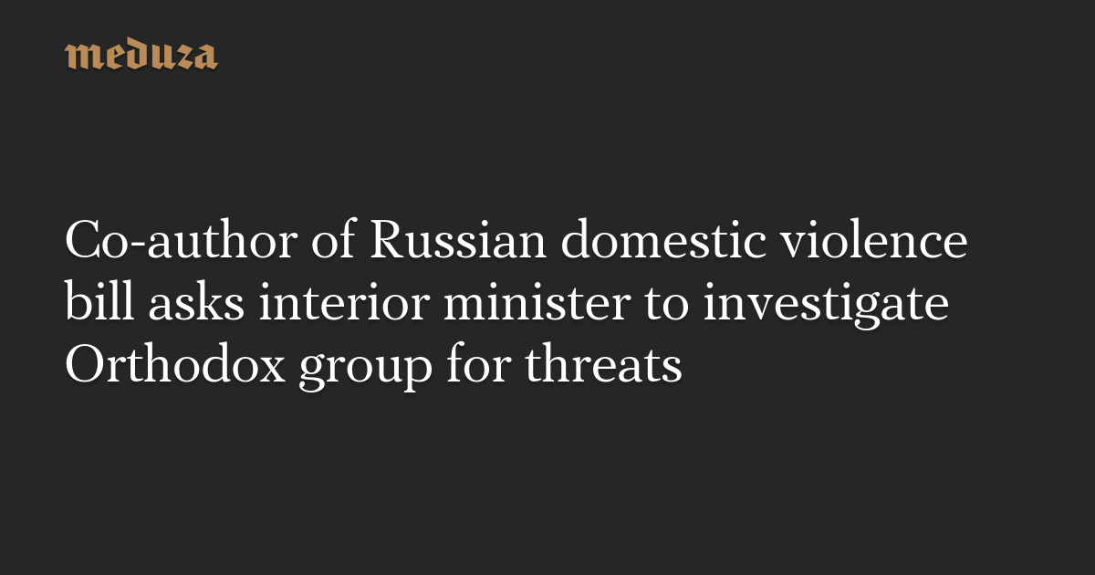 Co-author of Russian domestic violence bill asks interior minister to investigate Orthodox group for threats
