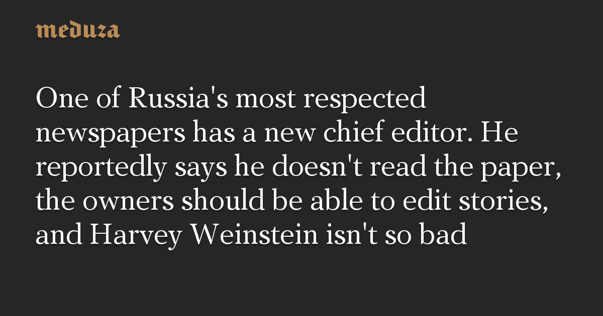 One of Russia's most respected newspapers has a new chief editor. He reportedly says he doesn't read the paper, the owners should be able to edit stories, and Harvey Weinstein isn't so bad