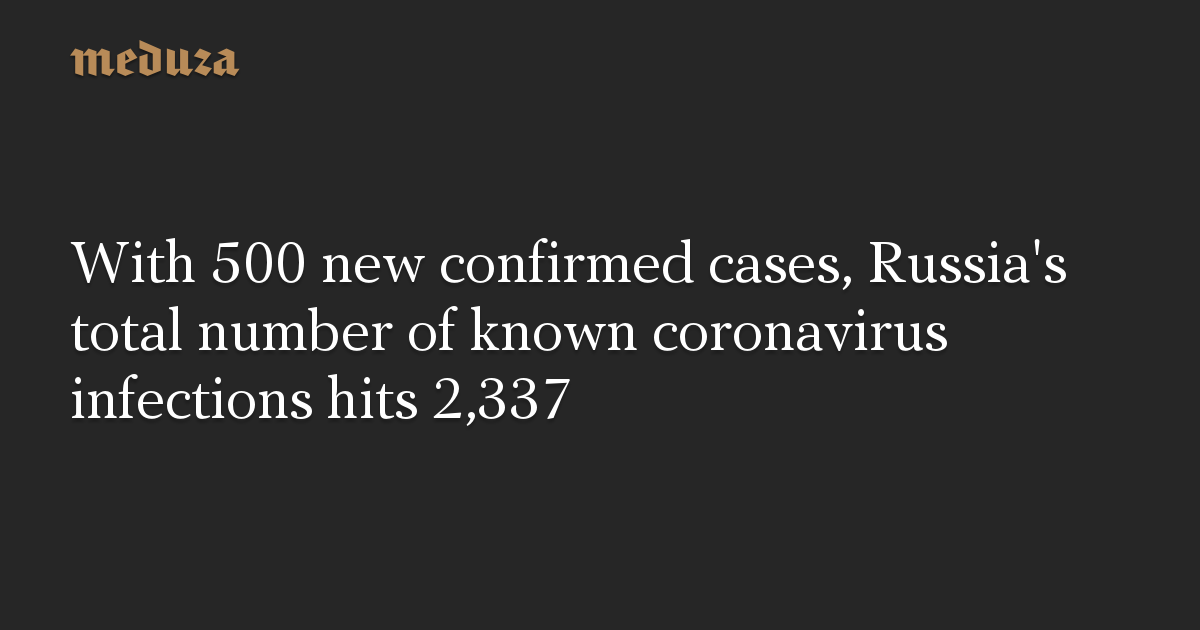 With 500 new confirmed cases, Russia’s total number of known coronavirus infections hits 2,337