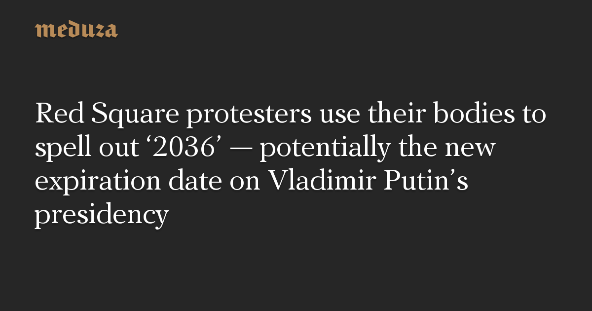 Police officers have arrested eight activists in Red Square who arranged their bodies on the ground to spell out “2036” — the year to which Vladimir Putin’s presidency could extend, once Russia adopts a new constitutional amendment to “zero” his presidential term clock. The group of demonstrators included members of Pussy Riot and Moscow municipal deputies Lyusya Shtein and Viktor Kotov.