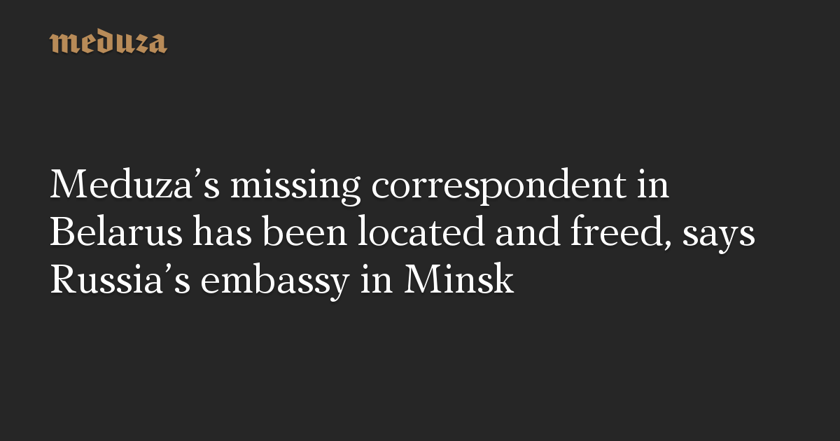Meduza’s missing correspondent in Belarus has been located and freed, says Russia’s embassy in Minsk